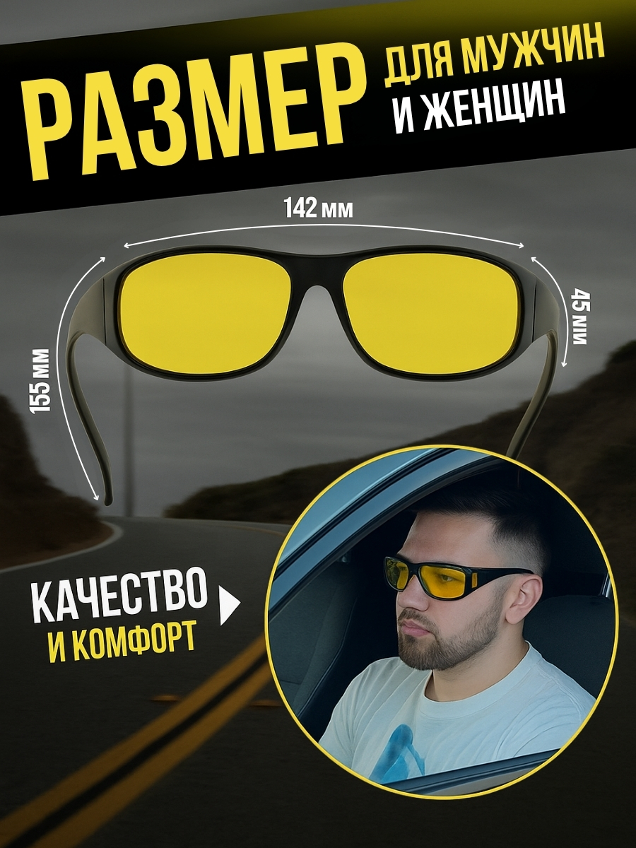 Поляризационные очки для водителей HD Vision с жёлтыми линзами повышают чёткость контуров,